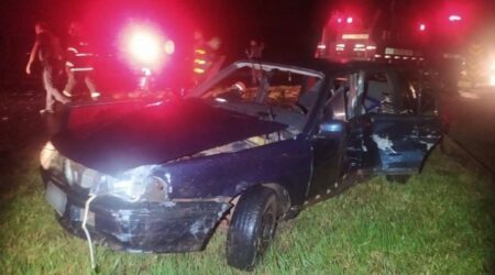 Batida entre carro e caminhão mata homem e adolescente e deixa duas pessoas gravemente feridas