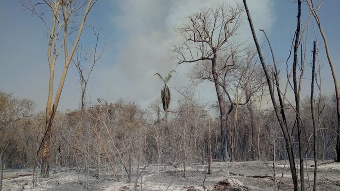 O Corpo de Bombeiros afirmou que o local é de difícil acesso e estima que cerca de 30 mil m² tenham consumidos pelas chamas.