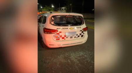 Segundo a corporação, dardos de tranquilizantes precisaram ser usados no animal, que aparenta ter entre 2 e 3 anos. Quando começaram a fazer efeito, o animal deslizou sobre o tronco, caindo na sequência.