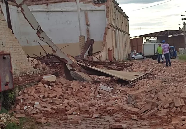 Parte de barracão de empresa desaba após forte chuva em Rancharia