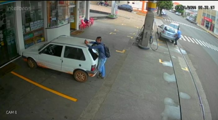 A ação do frentista foi rápida e precisa ao se afastar no momento da colisão e na sequência, correu para retirar o bico da bomba de gasolina para evitar um incêndio.